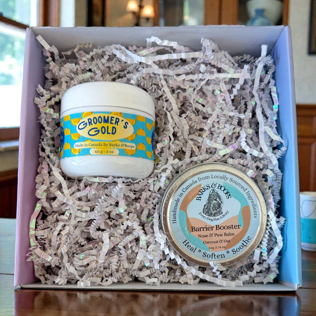 Master the fundamentals of natural dog care with our two most versatile products. This powerhouse duo handles everything from cracked paws to dry noses to minor skin irritations - no petroleum, no synthetic fragrances, just results.